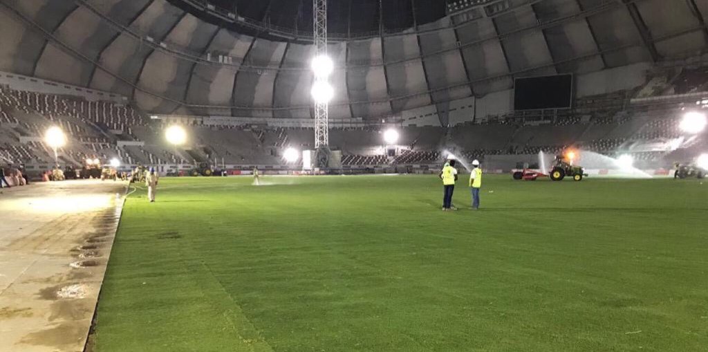 Doha: The first pitch for Qatar 2022 clocked a new world record in laying down the turf at The Khalifa International Stadium in 13 and a half hours.
