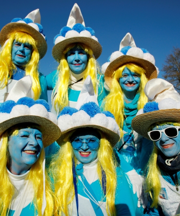 Participants dressed as "Black Forest smurfs" pose. REUTERS/Arnd Wiegmann