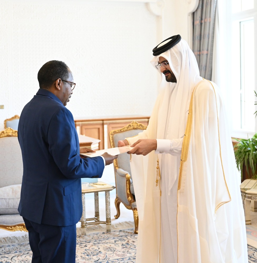 His Highness received the credentials of Ambassador of the State of Libya HE Mohammed Mustafa Al Saghir, Ambassador of the Kingdom of Eswatini HE Sotja Mphucuko Dlamini, and Ambassador of the Federal Democratic Republic of Ethiopia HE Faisal Ali Ibrahim.