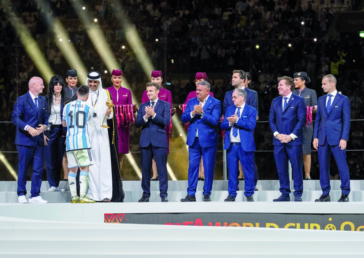Amir H H Sheikh Tamim bin Hamad Al Thani crowned Argentina, who won their third world title. The Amir and FIFA President Gianni Infantino handed over gold medals to the winning players while President of France H E Emmanuel Macron and Infantino presented silver medals to France’s players.