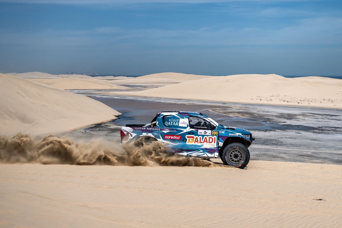 Nasser Saleh Al Attiyah drives the Toyota GR DKR Hilux on his way to win the 2023 Qatar International Baja, yesterday.