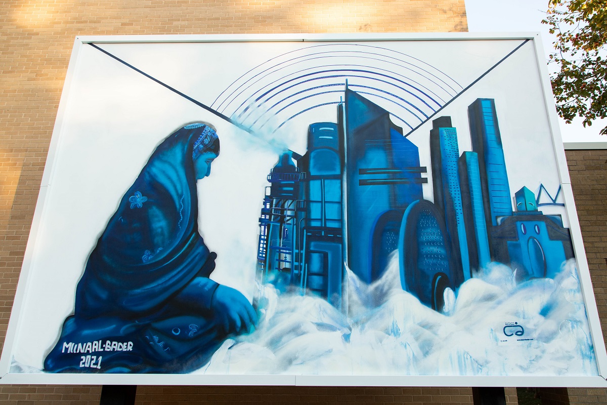 In Jersey City, Nada Khozestani painted “Side by Side,” a mural inspired by her deep love and fascination for Qatari culture and the vast range of saturated colors found in daily life and various elements seen in nature. Meanwhile in Portland, Fatima Al Sharshani painted a mural entitled “The Never Ending You,” an expression of continuity and infinity, which debuted in August.