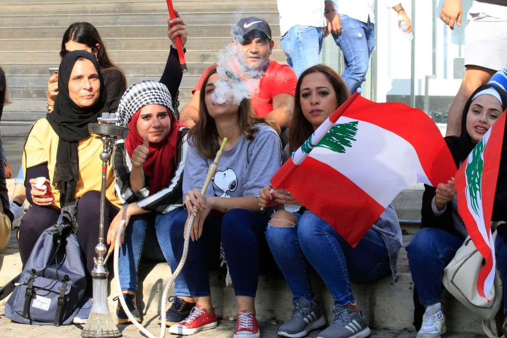 Demonstrators dance during an anti-government protest in downtown Beirut, Lebanon October 20, 2019. REUTERS/Mohamed Azakir