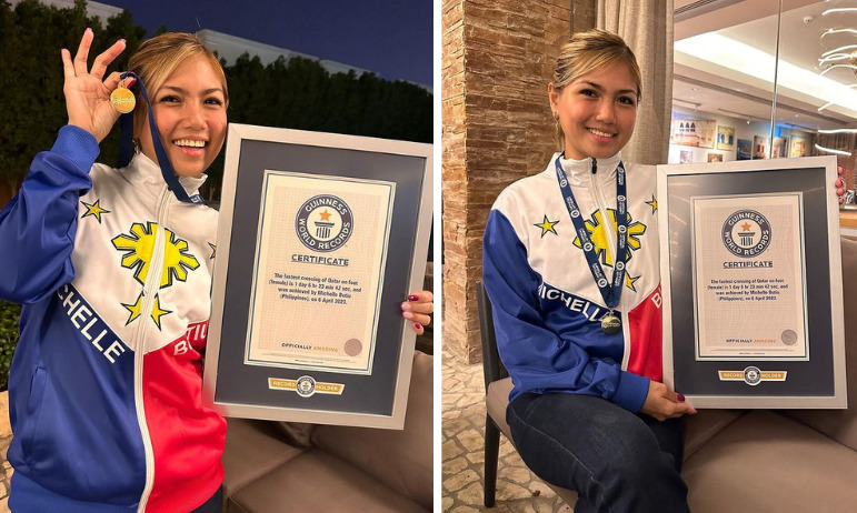 In an impressive athletic feat, Filipina expat Michelle Butiu broke the record for the "Fastest Crossing of Qatar on Foot (Female)" on April 6, 2023. Michelle accomplished this achievement by crossing Qatar from Al Ruwais to Abu Samra in an outstanding time of 1 day, 6 hours, 23 minutes, and 42 seconds, surpassing the previous record of Sufiya Sufi Khan.