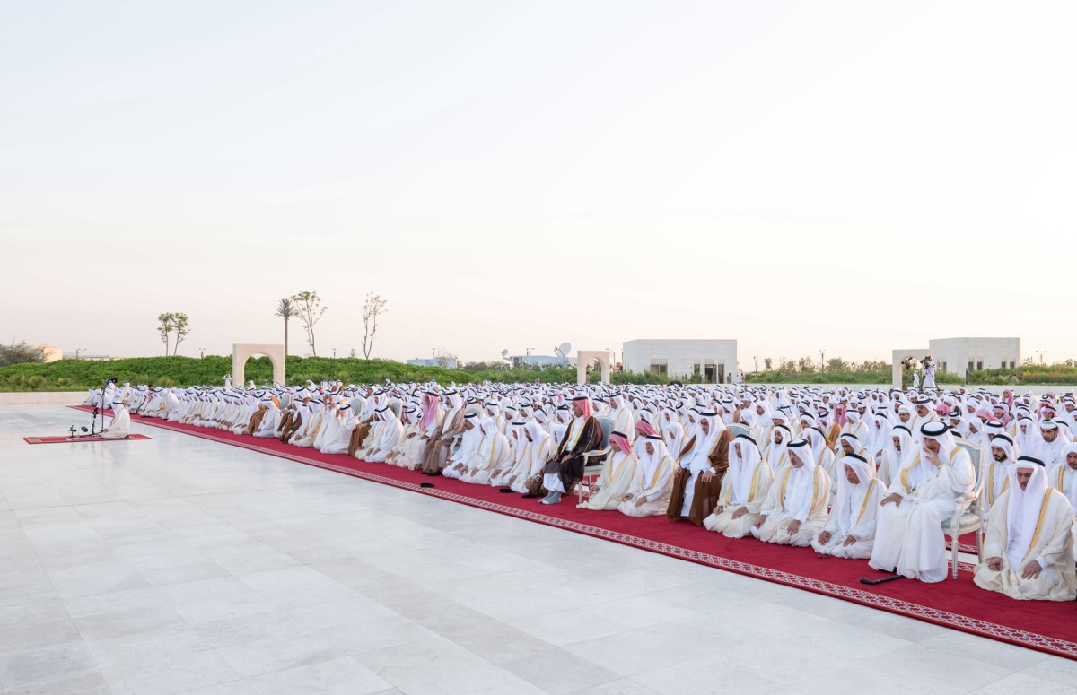 Doha: The Amir HH Sheikh Tamim bin Hamad Al-Thani performed Eid Al Fitr prayers along with citizens at Lusail praying area this morning.