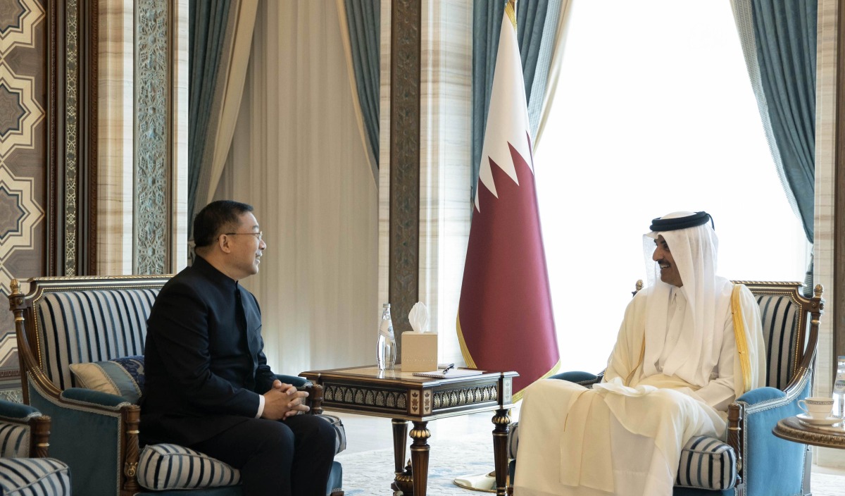 Doha: The Amir H H Sheikh Tamim bin Hamad Al Thani met in his office at Lusail Palace this morning, with Ambassador of the People's Republic of China HE Zhou Jian, who called on the Amir to greet him on the occasion of the end of his tenure in the country.