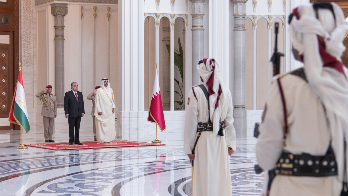 Doha, Qatar: The Amir HH Sheikh Tamim bin Hamad Al-Thani held a session of official talks at Lusail Palace on Monday with President of the friendly Republic of Tajikistan HE Emomali Rahmon.