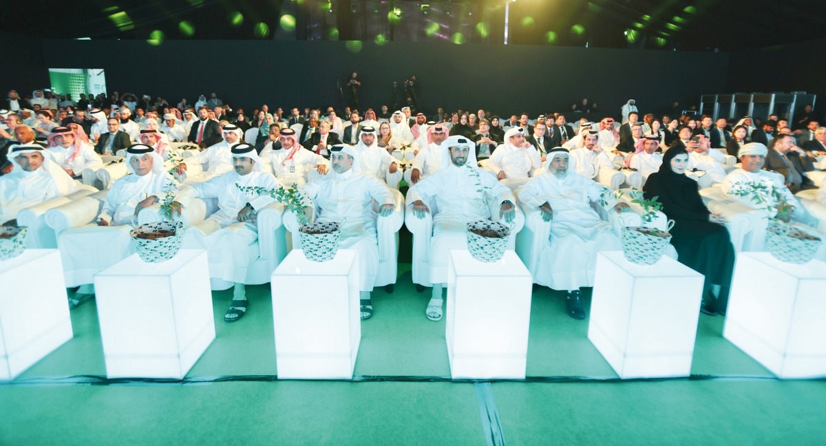Minister of Environment and Climate Change H E Dr. Abdullah bin Abdulaziz bin Turki Al Subaie (fourth left), Minister of Awqaf and Islamic Affairs H E Ghanem bin Shaheen bin Ghanem Al Ghanim (third right), Minister of Culture H E Sheikh Abdulrahman bin Hamad Al Thani (third left), Minister of Social Development and Family H E Mariam bint Ali bin Nasser Al Misnad (second right), Minister of Municipality H E Abdullah bin Hamad bin Abdullah Al Attiyah (fourth right), Minister of State for Foreign Affairs H E Sultan bin Saad Al Muraikhi (second left) during opening ceremony of AgriteQ 2024 at Expo 2023 Doha yesterday. Pic by Mohamad Farag/ The Peninsula