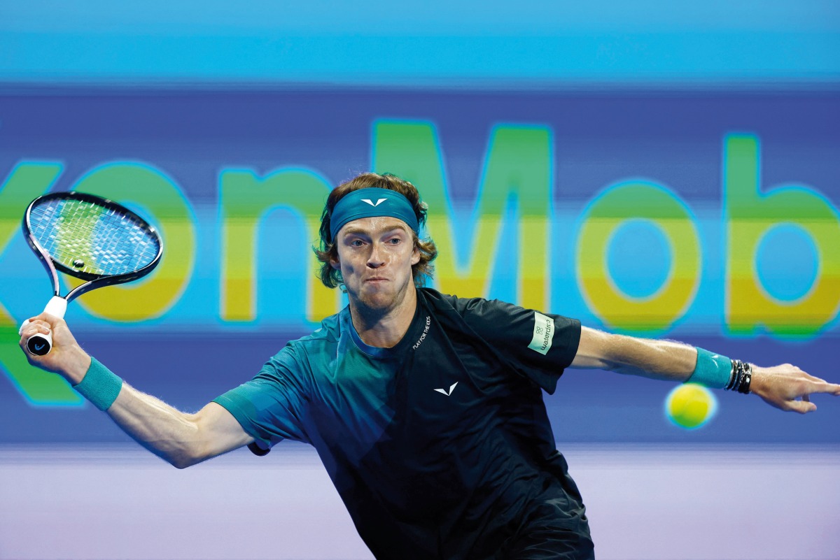 Russia’s Andrey Rublev hits a return against France’s Richard Gasquet. AFP