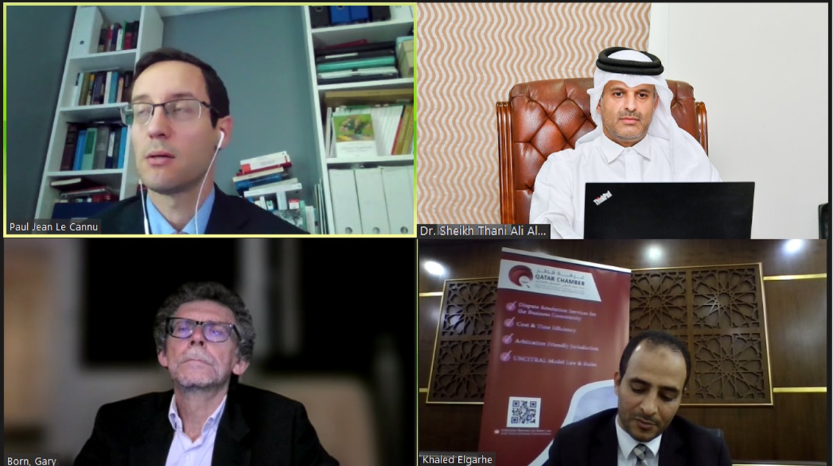 The speakers during the webinar include Gary B Born, the international lawyer and academic and Chair of the International Arbitration and International Litigation practices at Wilmer Cutler Pickering Hale and Dorr, and Paul Jean Le Cannu, Team Leader and Senior Legal Counsel at the ICSID. Moderated by QICCA’s legal counselor Khaled Elgarhe, the webinar was attended by more than 500 participants from law firms, arbitrators, and practioners.