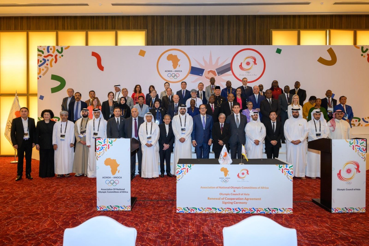 Manama: Senior Vice President of the Association of National Olympic Committees (ANOC) and President of the Qatar Olympic Committee (QOC) H E Sheikh Joaan bin Hamad Al Thani attended the signing ceremony for the renewal of the Cooperation Agreement between the Olympic Council of Asia (OCA) and the Association of National Olympic Committees of Africa (ANOCA) yesterday.
