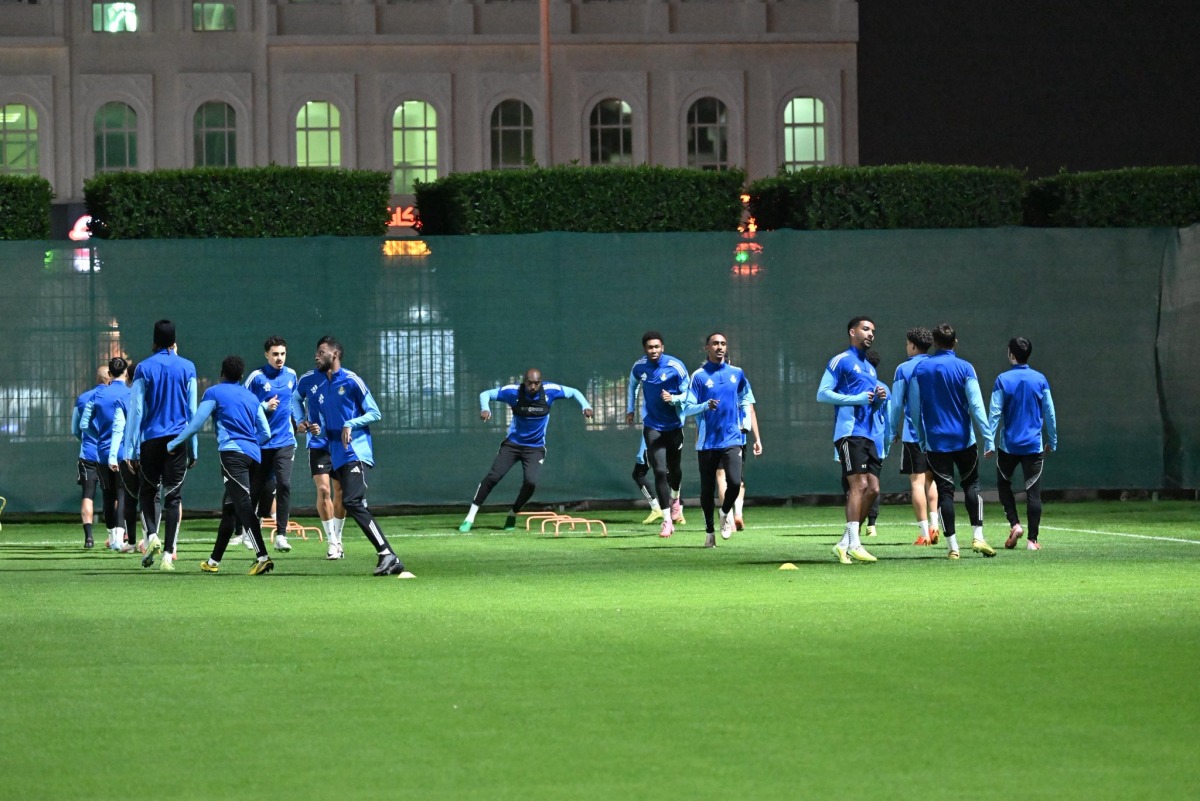 Al Duhail players take part in a training session in Tabriz, Iran, yesterday.
