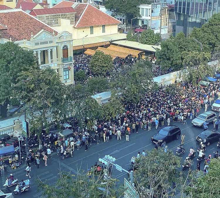 This photo by Fresh News on January 23 shows general view of a crowd gathering at the mansion of Cambodian tycoon Sok Kong. (Photo by Fresh News AFP)