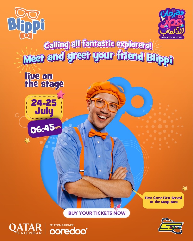 Children’s favorite entertainer, Blippi, makes his debut at the Qatar Toy Festival on July 25 and 26, bringing songs, science, and educational fun to the stage. This third edition of the Qatar Toy Festival is the biggest yet, with live shows, themed zones, and a brand-new summer camp for kids and teens.