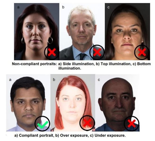 Below is the photograph guidelines as per ICAO standards to be adhered to for passport services.