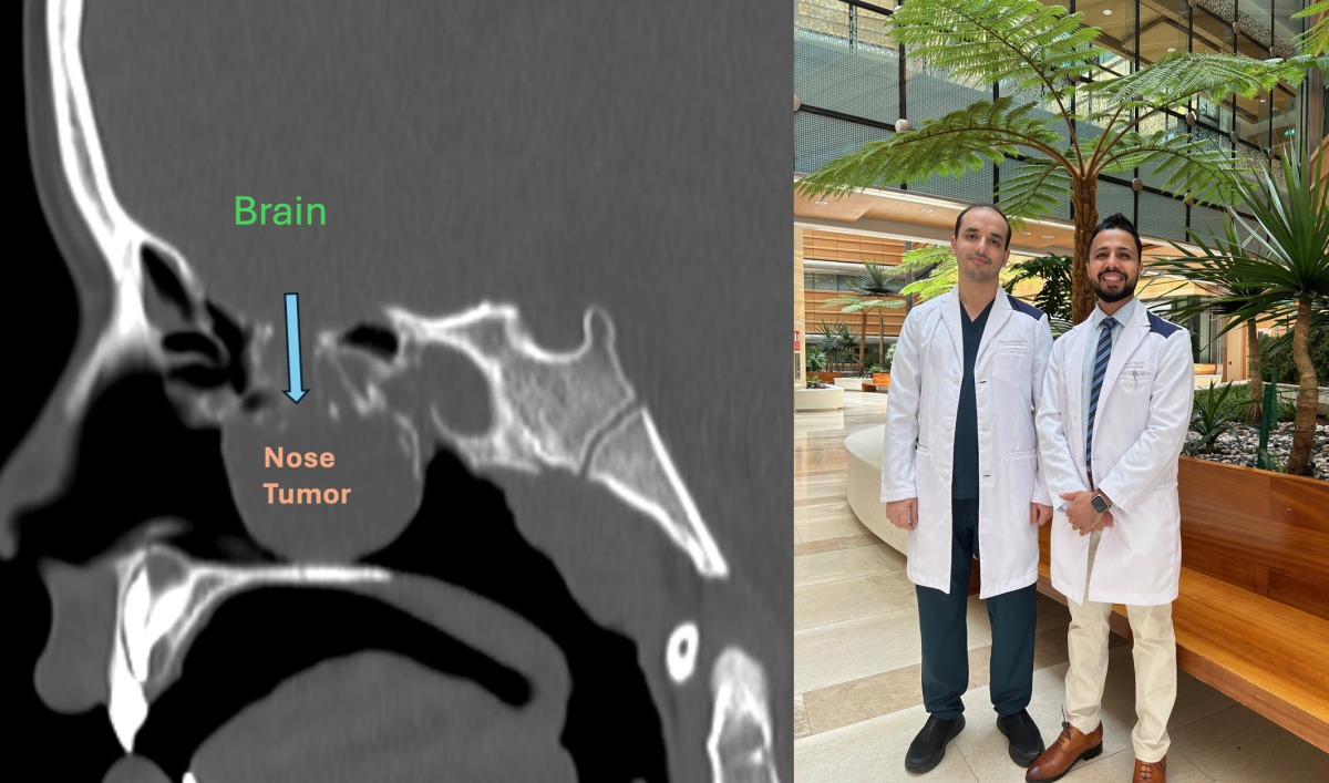 The child was seen at the Ear, Nose and Throat (ENT) clinic at Sidra Medicine with a blockage in his nose. After an in-office endoscopy and imaging, the diagnosis showed a tumour had created an unusual route from the sterile area inside his skull to the outside, putting him at risk of serious infections and leakage of cerebrospinal fluid (CSF), a clear, colourless body fluid found in the brain and spinal cord. Since the mass of the tumour was blocking his nose, it was making it hard for him to breathe.