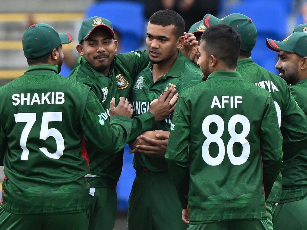 Hobart, Australia: Taskin Ahmed took wickets with the first two balls of the innings to set Bangladesh on course for a nine-run win over Netherlands in Group 2 on Monday and its first victory in the Super 12 round of the Twenty20 World Cup.