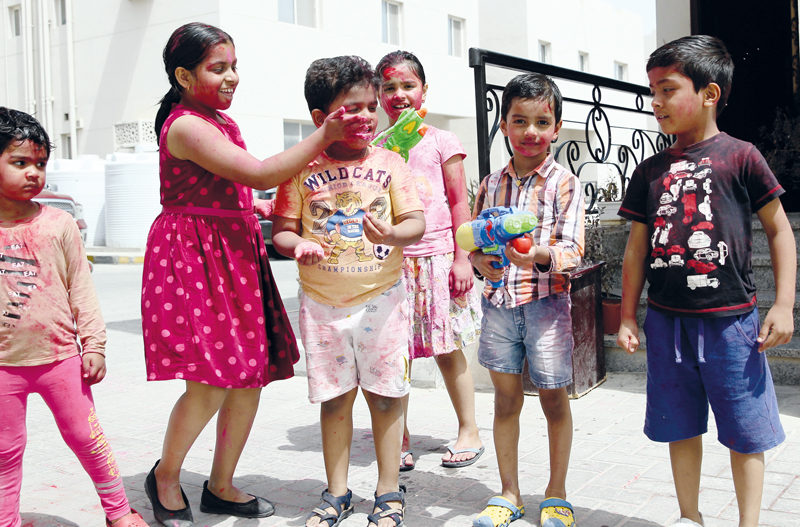 For Indian expatriates living in Ezdan Village-4 in Meshaf, it was a different Thursday. The residents, who had been waiting for months for Holi, decided to make this a memorable day. Ladies came with packets of colours while the children were armed small water-guns.