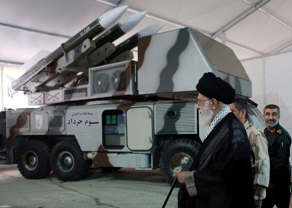 Iran's Supreme Leader Ayatollah Ali Khamenei is seen near a "3 Khordad" system which is said to have been used to shoot down a U.S. military drone, according to news agency Fars, in this undated handout picture. Fars news/Handout via Reuters