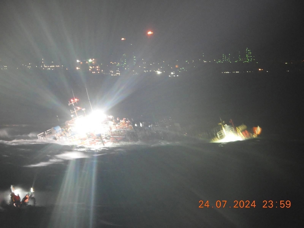 A photo released by the coast guard showed the MT Terra Nova almost entirely submerged in rough seas.