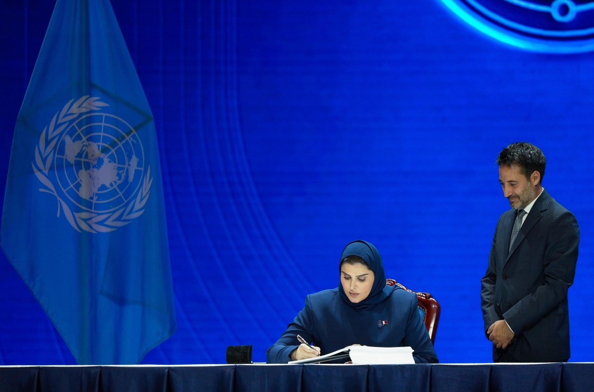 The Convention was signed on behalf of the State of Qatar by HE Minister of State for International Cooperation Dr. Maryam bint Ali bin Nasser Al Misnad.