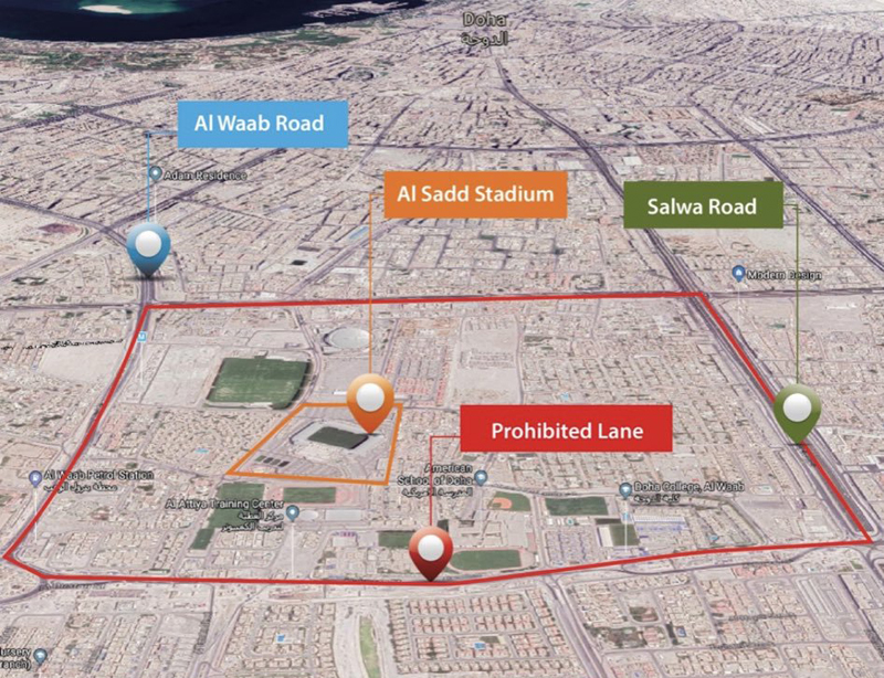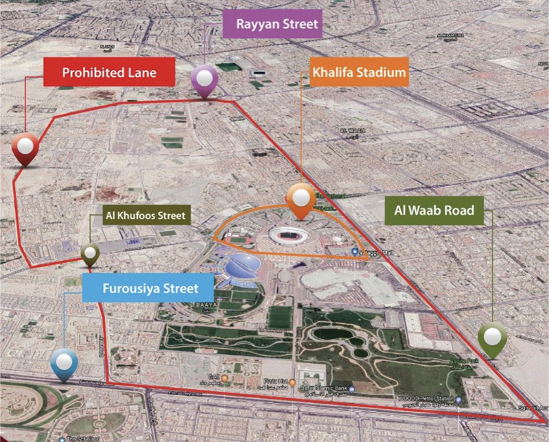 The department published maps of the “forbidden roads” for all kind of trucks and passenger vehicles during 24th Arabian Gulf Cup from November 26, 2019 to December 08, 2019.