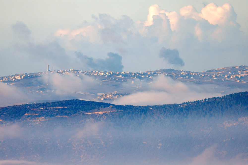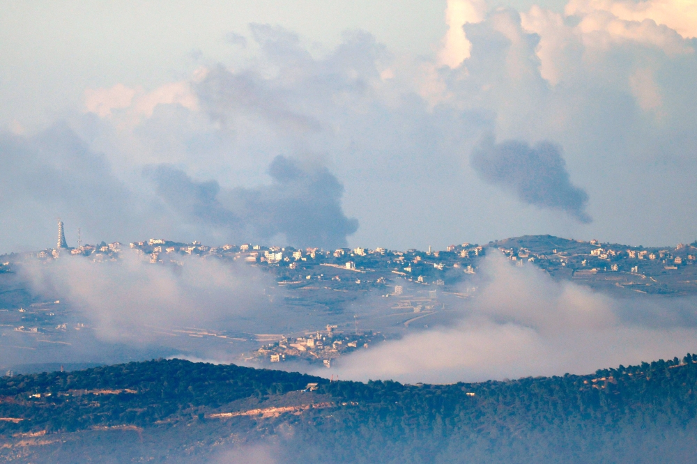 Black smoke billowing across the horizon along the hills in the southern Lebanese village of Meiss El-Jabal following Israeli bombardment on December 25, 2023. (Photo by jalaa marey / AFP)
