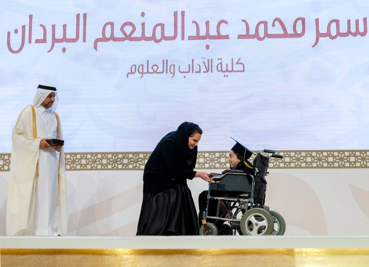 Doha: Consort of HH the Amir, HH Sheikha Jawaher bint Hamad bin Suhaim Al-Thani patronized the graduation ceremony of the 45th batch (Class of 2022) of female undergraduate and graduate students from Qatar University (QU), which was held at the University's Sports and Events Complex on Thursday morning.
