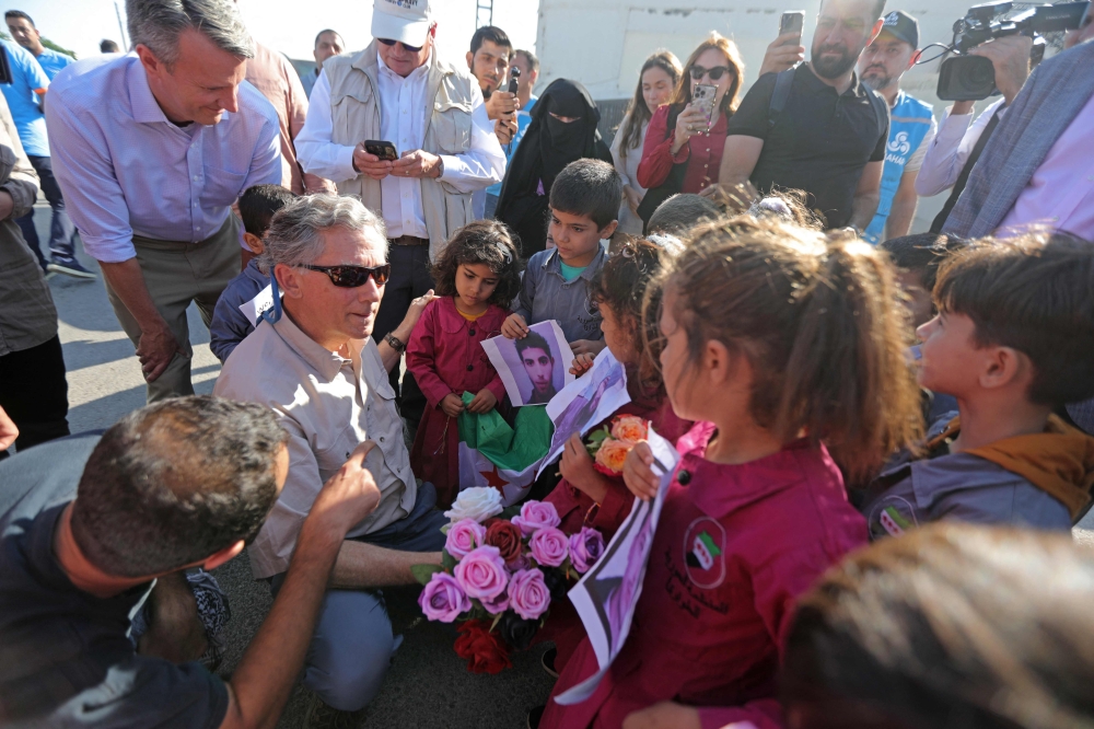 Crossing into northwest Syria on what would be a roughly one-hour trip, the lawmakers were presented with flowers from students from Wisdom House. The facility is a school for orphans that is a project of the Syrian Emergency Task Force, a U.S.-based Syrian organization that facilitated the lawmakers’ trip.
