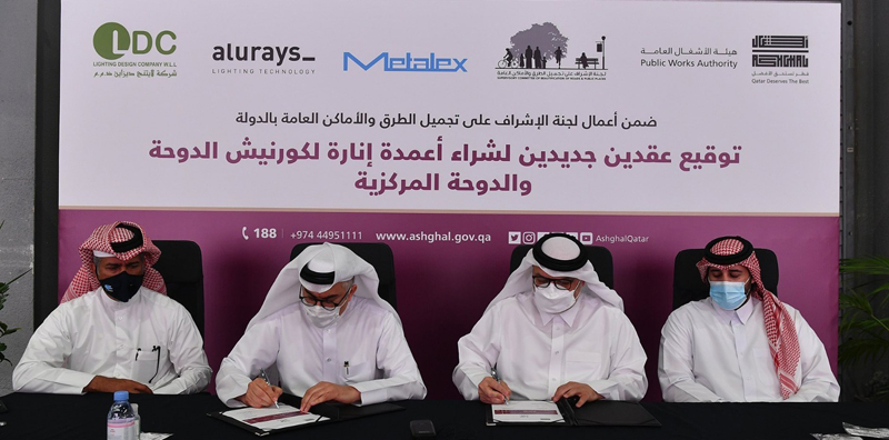 Doha: The Public Works Authority (Ashghal) signed two contracts to provide 2,600 decorative lighting poles to enhance Doha Corniche and Central Doha areas, within the works of the Supervisory Committee of Beautification of Roads and Public Places in Qatar. The contracts were signed in the presence of Dr Eng Saad bin Ahmed Al Muhannadi, President of Ashghal, executives and representatives of local manufacturing companies.
