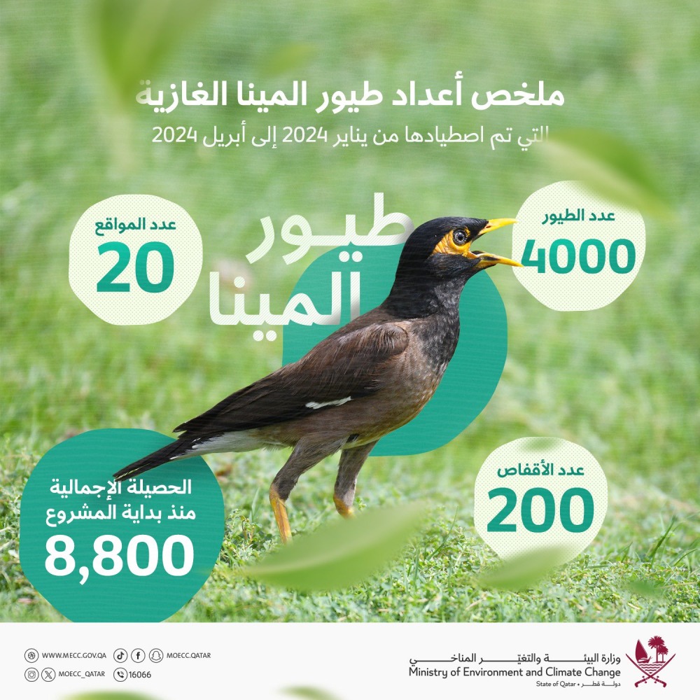 Doha, Qatar: The Ministry of Environment and Climate Change (MoECC) has taken decisive action against the invasive Myna bird population, reporting the trapping of approximately 8,800 birds as part of its strategy to preserve the country’s ecological balance.