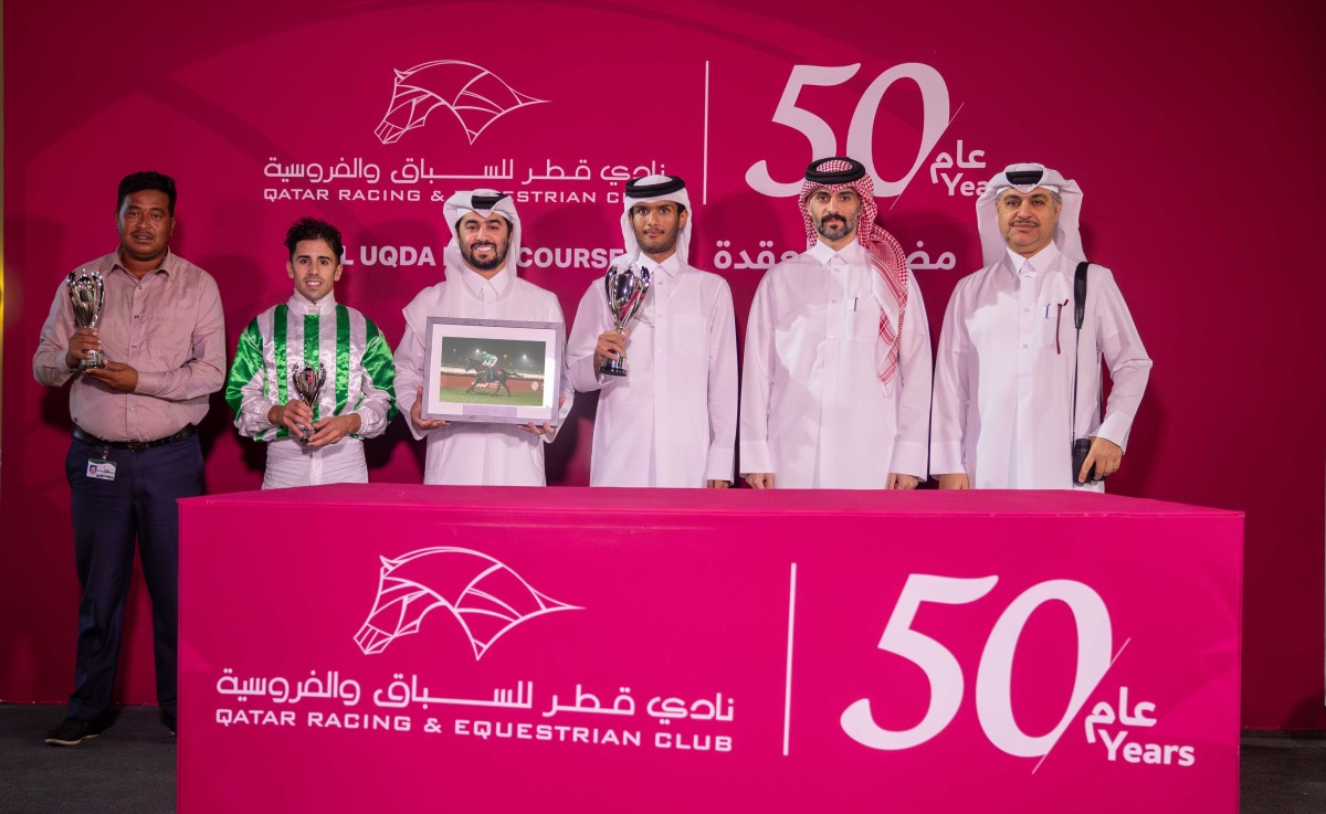 Owned by Mansoor Mesfer Al-Shahwani and trained by Abdulla Mesfer Al-Shahwani, the grey colt surged late under Jefferson Smith to secure victory by three-quarters of a length, his second career win alongside three placed efforts in six starts.