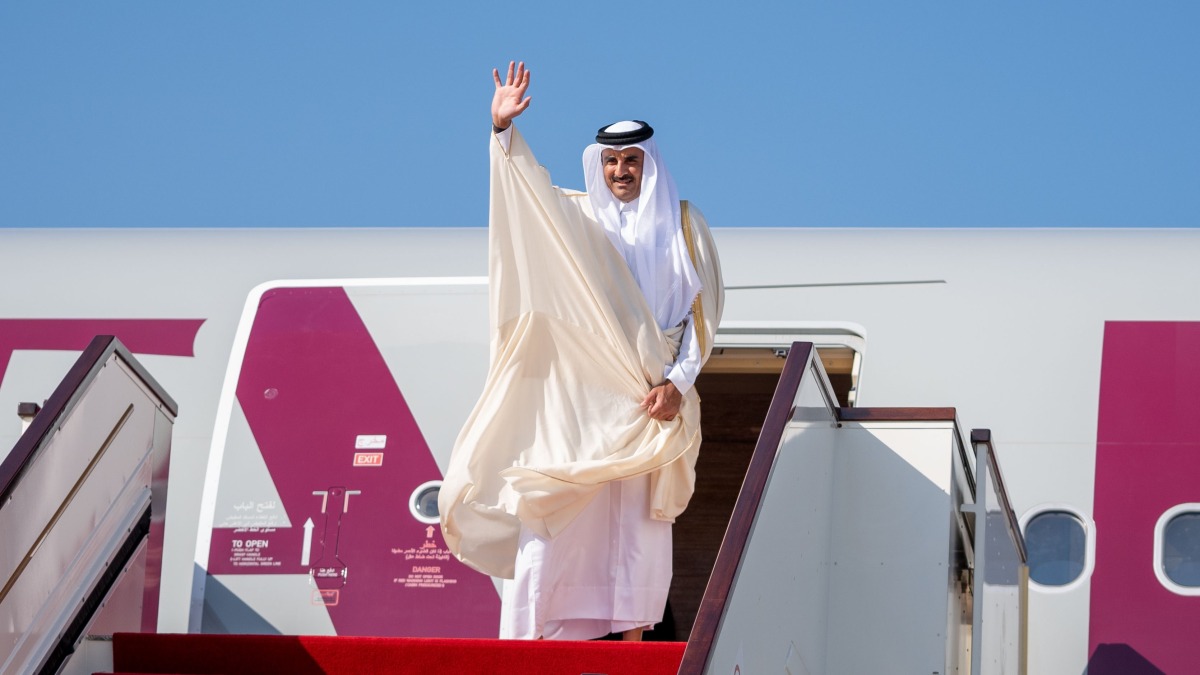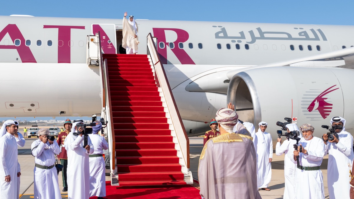 Doha, Qatar: The Amir His Highness Sheikh Tamim bin Hamad Al Thani left the Omani capital, Muscat, today, after a state visit to the sisterly Sultanate of Oman.