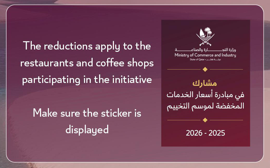 Doha, Qatar: The Ministry of Commerce and Industry (MoCI) has announced a price reduction of up to 30 percent at selected restaurants and cafés in the Sealine area during the winter camping season.