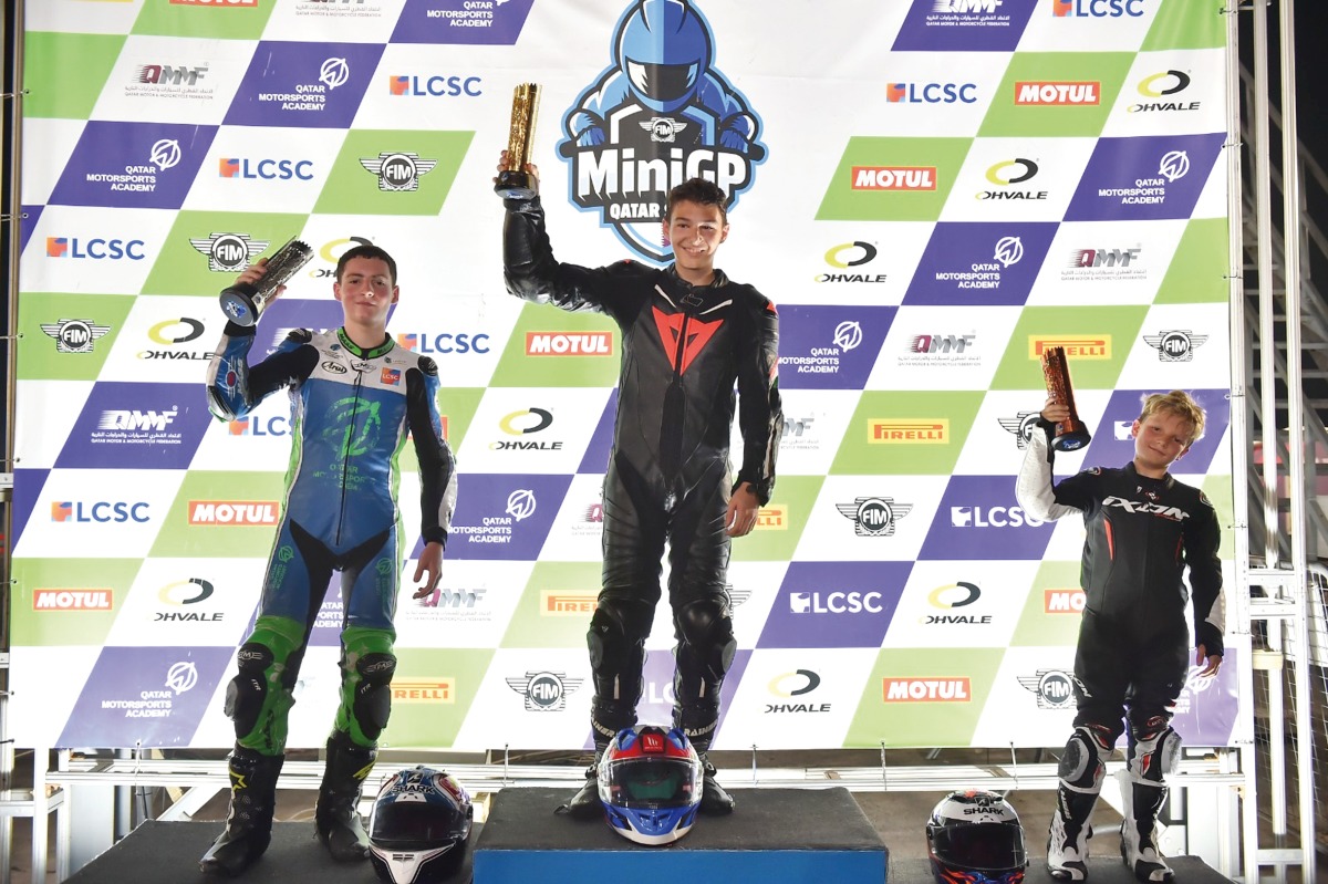 Martin Bellelli dominated the second round of the FIM MiniGP Qatar Championship, winning both the races at Lusail International Circuit’s Karting Track. With three rounds remaining, Bellelli has built a 32-point lead in the championship table.