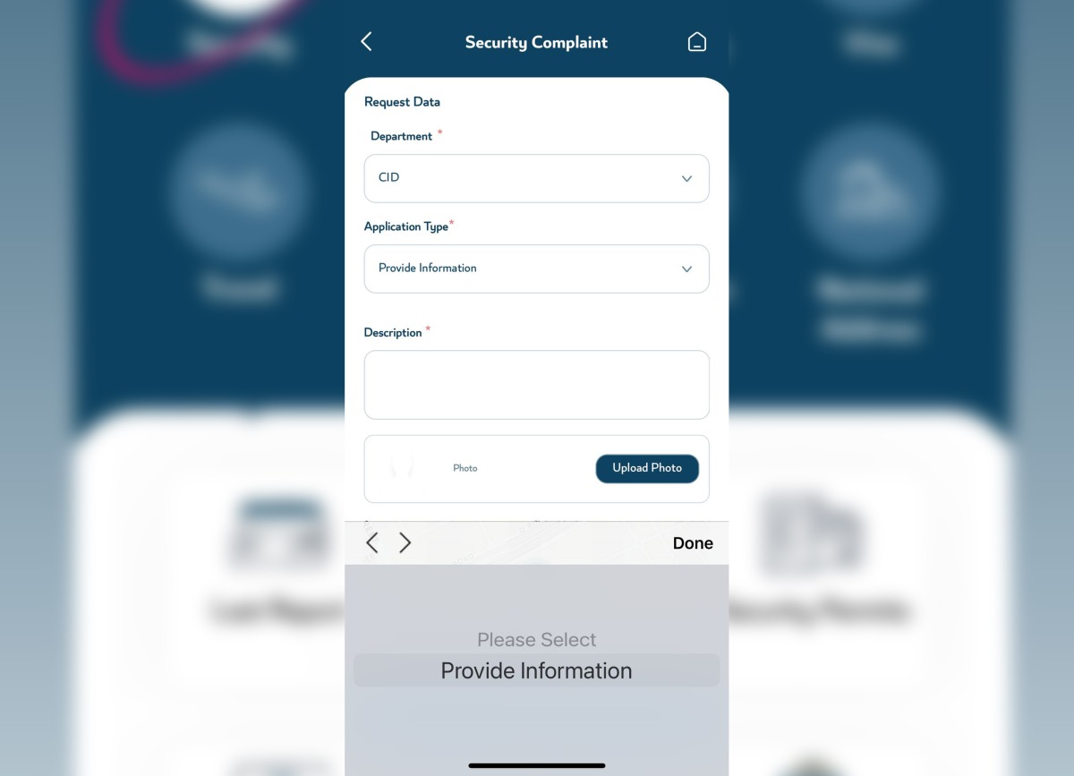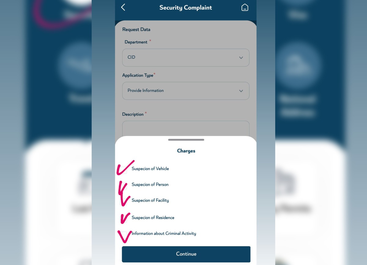 2. From the drop down menu labeled ‘Department,’ scroll down and choose the 6th option saying ‘CID,’ right between ‘Community Security Department’ and ‘Capital Security Department.’