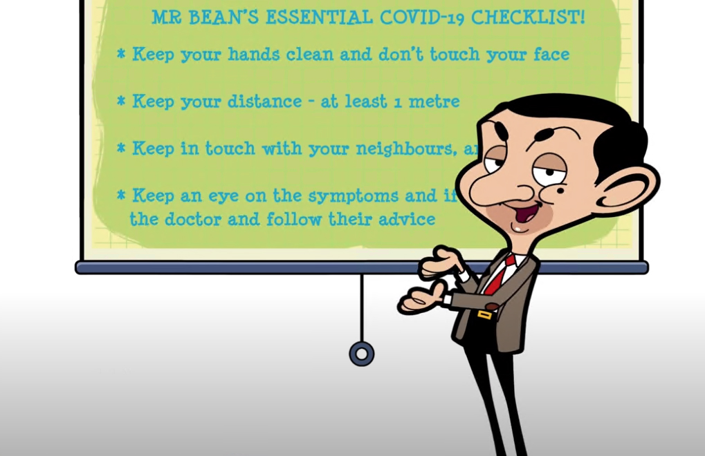 “Mr Bean’s Essential COVID-19 Checklist” is a reminder to people about the importance of washing hands, physical distancing and demonstrating kindness to their neighbours.