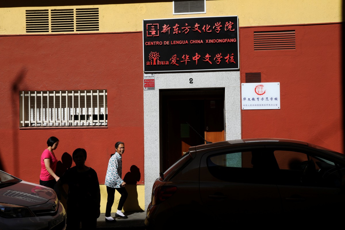 Women walk past a Chinese Language Center at the Usera district in Madrid, Spain, July 24, 2017. Picture taken July 24, 2017. Reuters/Susana Vera