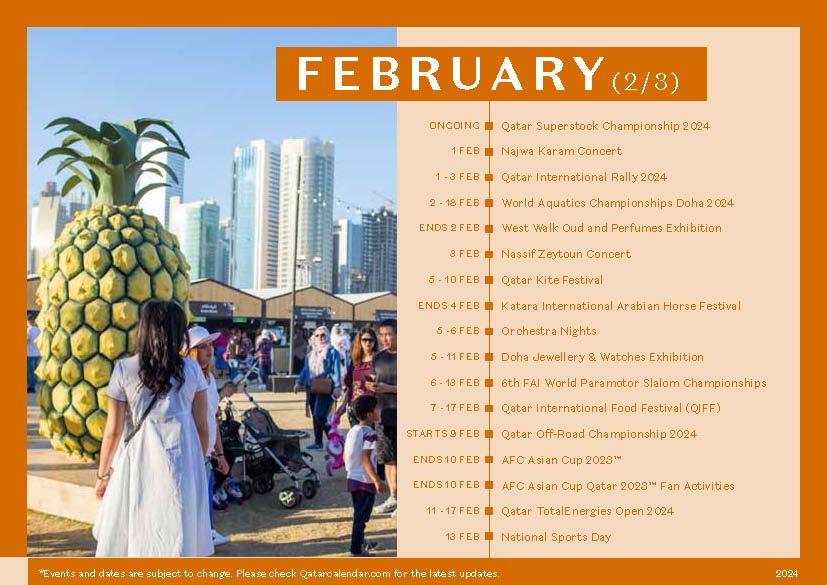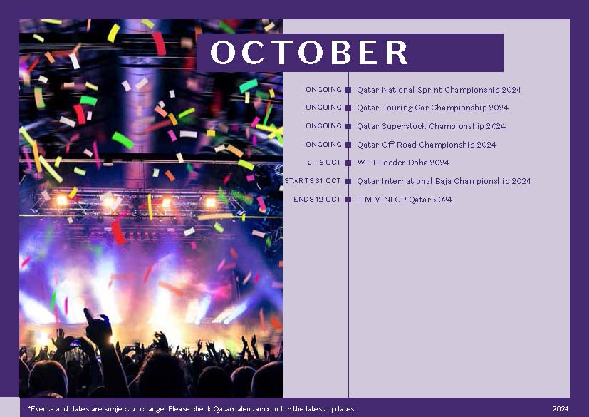 Deepening its sporting legacy and leveraging its investments in state-of-the-art facilities, Qatar presents several sporting events in 2024, ground, aquatic, and aerial.
