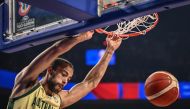 Australia's Xavier Cooks dunks the ball during the FIBA Basketball World Cup group F match between Australia and Japan at Okinawa Arena in Okinawa on August 29, 2023. (Photo by Yuichi Yamazaki / AFP)