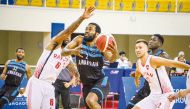 Al Rayyan players and officials celebrate after receiving the League trophy from Qatar Basketball Association President Mohammed Saad Al Mughaiseeb following their win over Al Shamal, on Saturday.