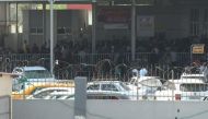 [12:49 pm Doha Time] Palestinian ambulances arrive at Rafah crossing in the southern Gaza Strip before crossing into Egypt on November 1, 2023....
