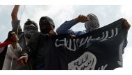 File photo shows smoke rising in the distance behind an Islamic State group (IS) flag and banner in Daquq, south of Kirkuk. More...