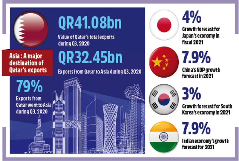 When it comes to exports, Asian countries such as Japan, China, South Korea, India and Singapore take up top slot in Qatari exports. During the third quarter (Q3) of 2020, Asia was the principal destination of Qatar’s exports.