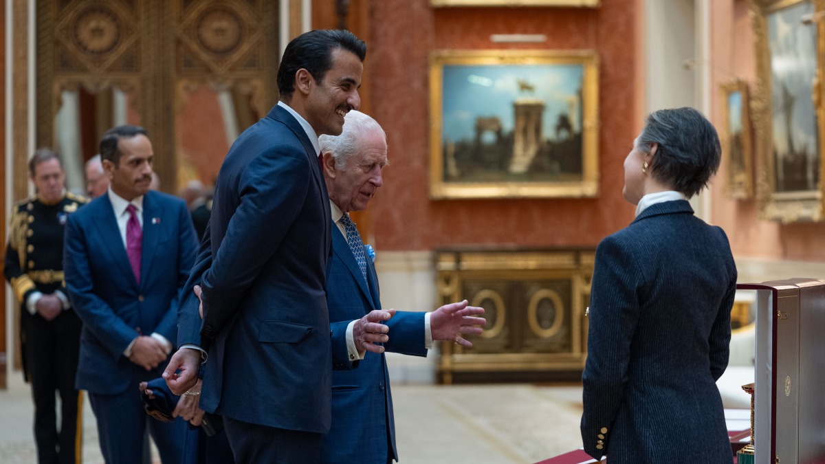 HM King Charles III presented HH the Amir with the Knight Grand Cross, the highest British Order, in appreciation of the distinguished relations between the two countries. In turn, HH the Amir presented HM King Charles III with the Sword of the Founder, Sheikh Jassim bin Mohammed bin Thani, the highest decoration in the country.