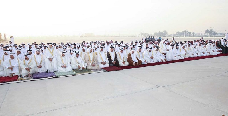 Doha: HH the Amir Sheikh Tamim bin Hamad Al-Thani performed Tuesday morning Eid Al Fitr prayer with citizens at Al Wajba praying area.