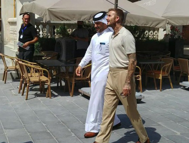 Doha: English Football legend David Beckham is currently visiting Qatar, many posts on social media showed. He was seen touring the Souq Waqif with some Qatari officials and was seen in videos posted on social media taking a photo with the installation of César's Pouce (thumb sculpture ). He also visited the Souq Waqif art centre.