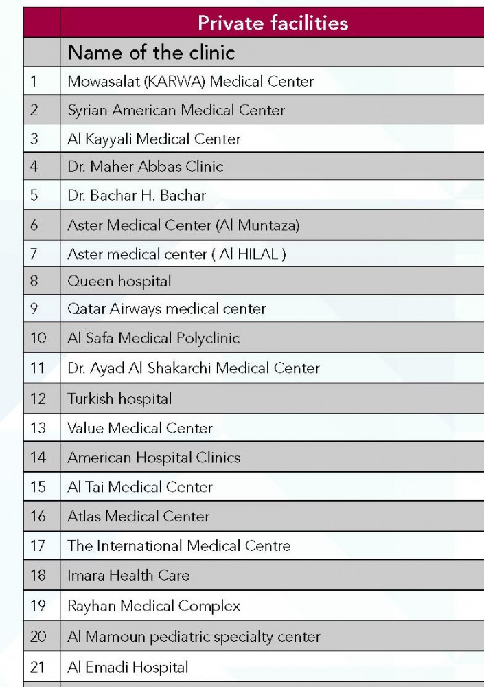 The list of 43 private clinics across Qatar has been published below.