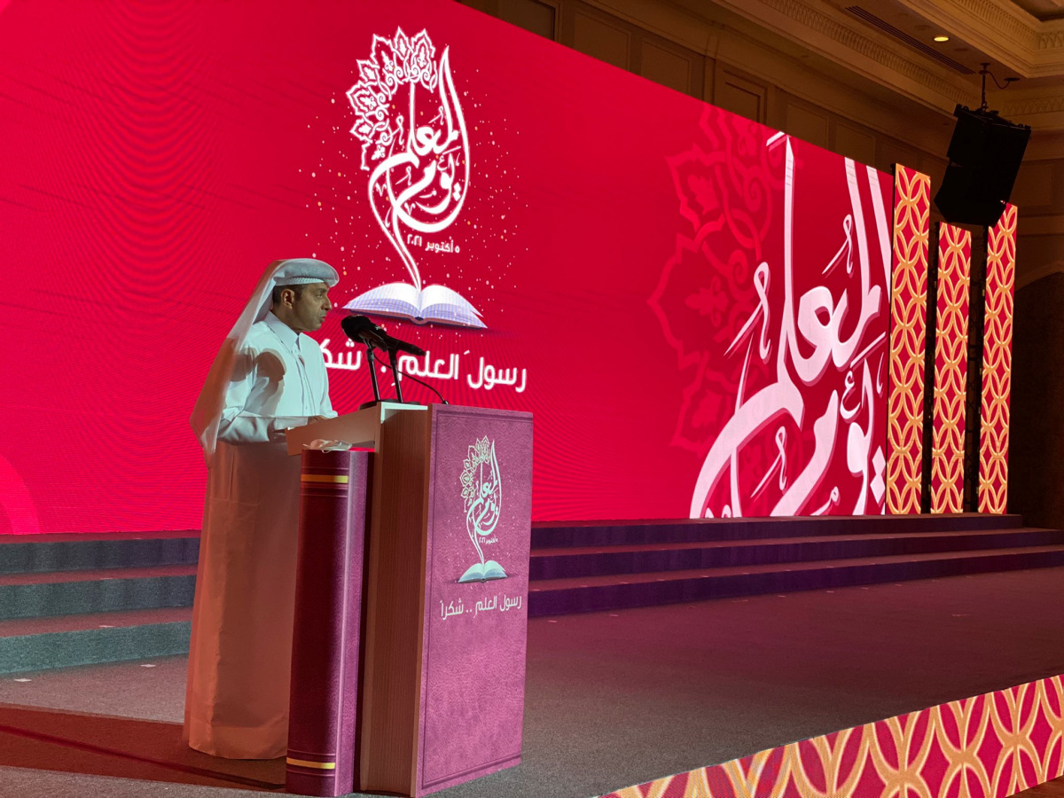 Minister of Education and Higher Education H E Dr. Mohammed bin Abdulwahed Al Hamadi and Assistant Undersecretary for Education Affairs at the Ministry of Education, Fawzia Al Khater honoured the teachers in a ceremony held today morning at Al Mirqab Hall at the Four Seasons Hotel.
