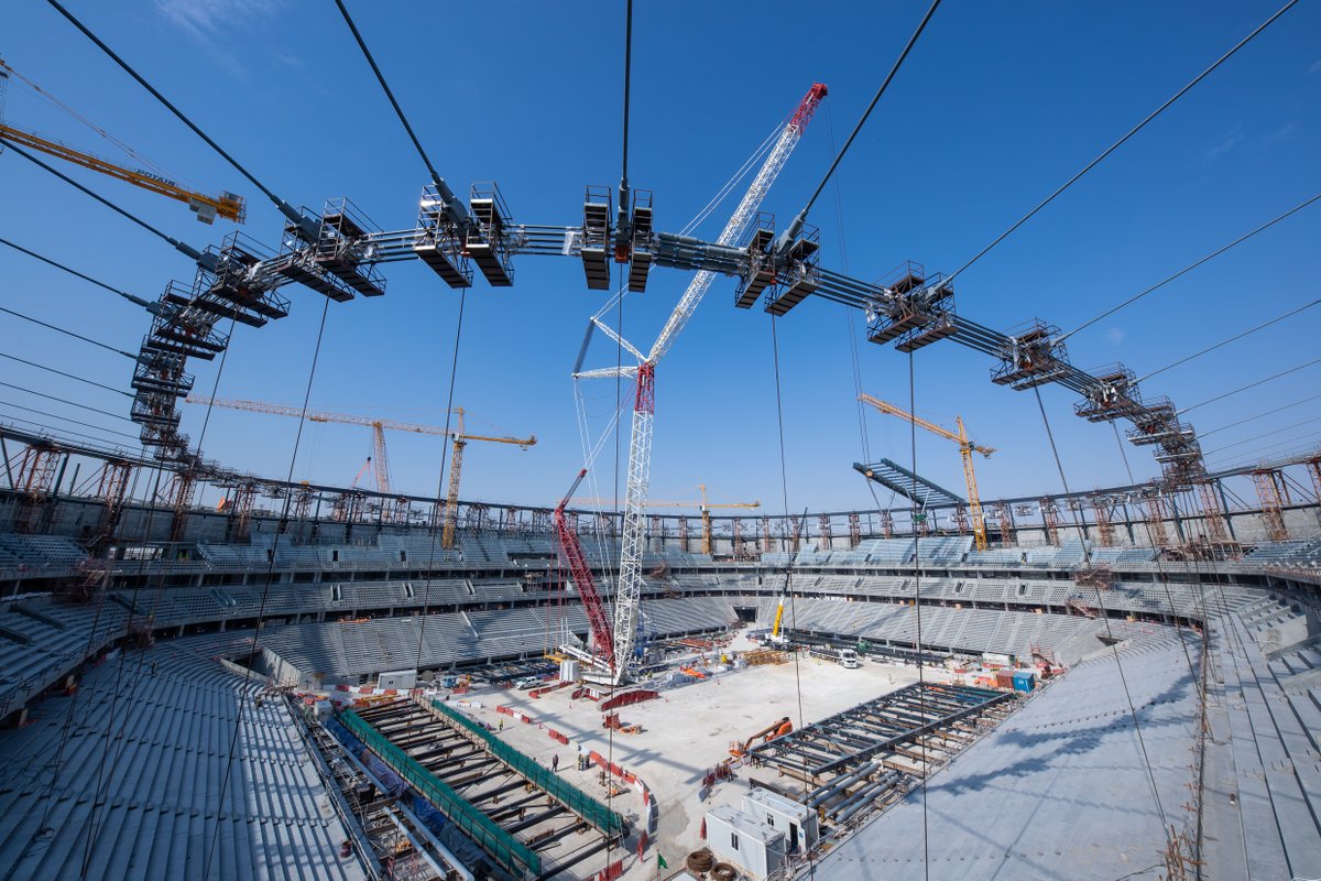 On its social media account, the Supreme Committee for Delivery and Legacy shared the details of this development. "The team at the stadium completed the big lift, which is a complex operation involving lifting two large steel ring with two layers of four metal cable each," said the statement.